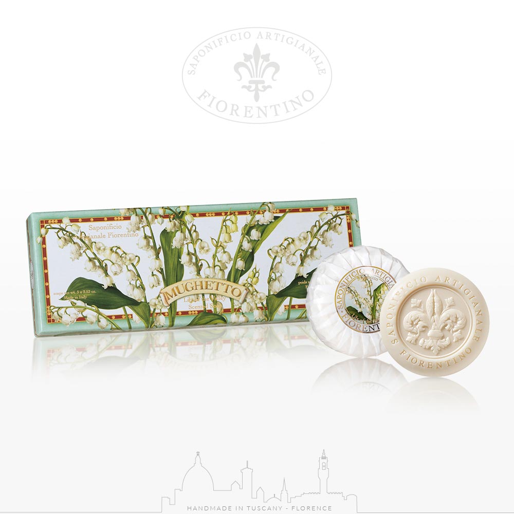 質量的藝術 100% 蔬菜鈴蘭花工皂。 這套包含三個 獨立包裝的肥皂 , 佛羅倫斯美藝皂,傳承了古法煉製精髓,排除對環境有害的化工香精,堅持無色素 無防腐劑。 採用當地最豐饒的自然原料,萃取天然花果香,並使用富含維生素E與較其他植物油擁有更多的抗氧化成分的食用級棕櫚油和椰子油,使在清潔肌膚之餘還能享有滋養的效果。 • 不含對羥基苯甲酸酯和鄰苯二甲酸鹽 • 不含 EDTA