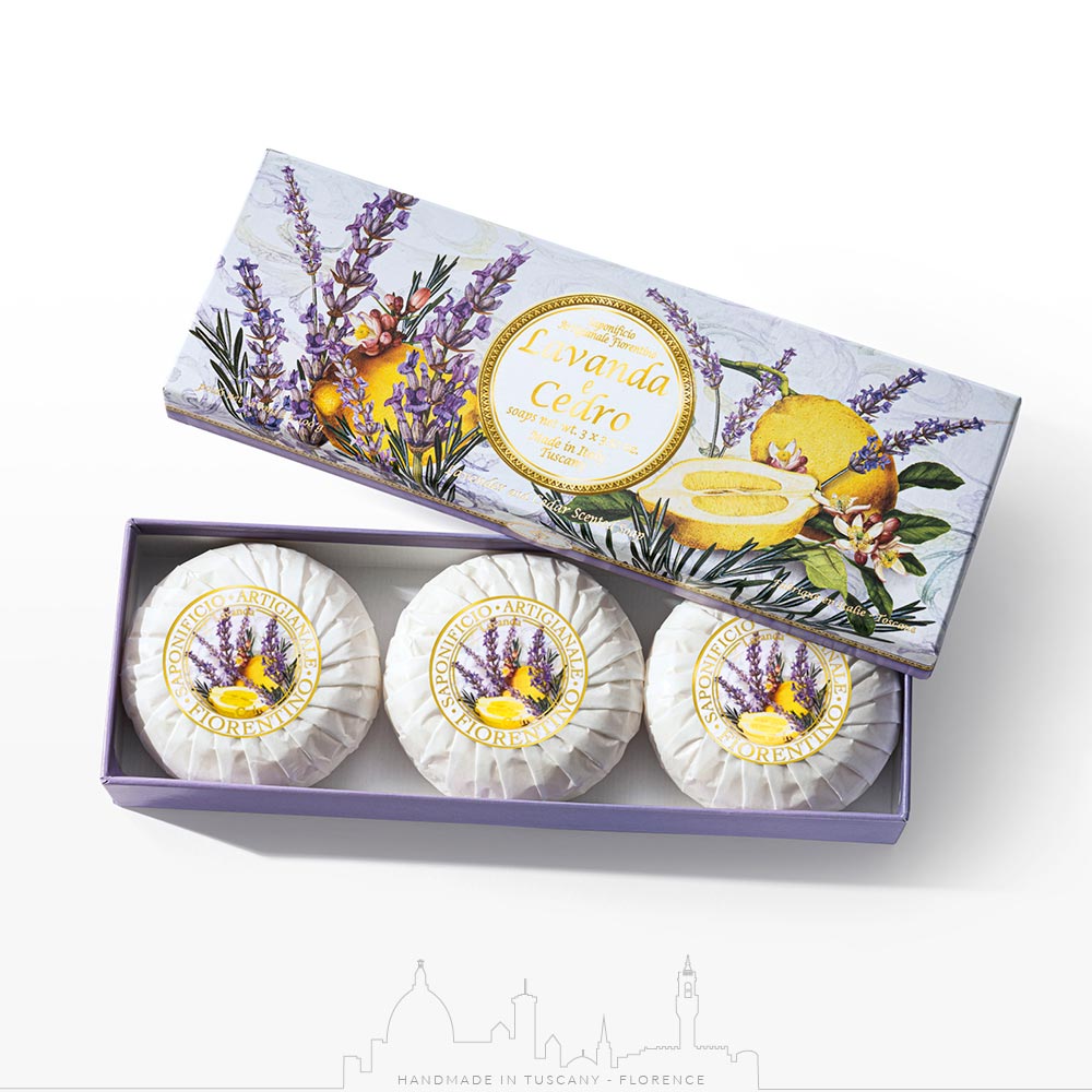 薰衣草的甜美香氣與雪松清新閃亮的香氣相得益彰,營造出強烈的感覺和情感。這款高品質肥皂具有潤膚和保濕作用,將征服您的感官。