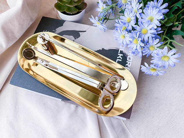 借助SAURORA 蠟燭工具,它們可以幫助您充分利用蠟燭,不僅可以延長蠟燭的使用壽命,還可以改善香氣和總體燃燒性能。 1. 燭芯剪 比起一般剪刀有弧度,較容易放到瓶子底部修剪燭芯。特別的平面設計亦可隔走燭芯灰燼,避免弄污蠟燭表面。 2. 滅燭罩 放在蠟燭上面,蓋住燭火3到4秒就能滅掉火苗,亦可隔走煙霧及黑煙,獨特可旋轉的設計讓你任何角度都能蓋掉燭火。 3. 燭芯勾 把燃燒時歪掉的燭火撥回正中...