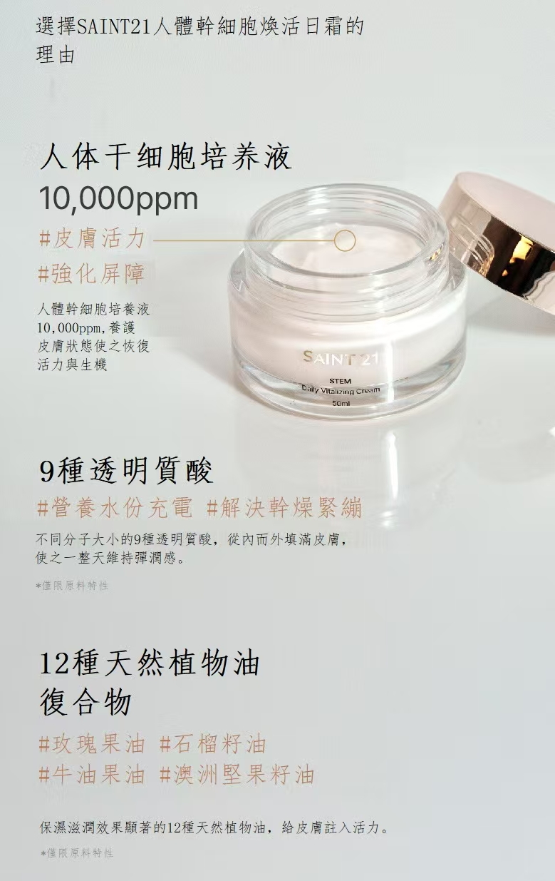 2件5折 Saint21幹細胞煥活日霜 平均$440