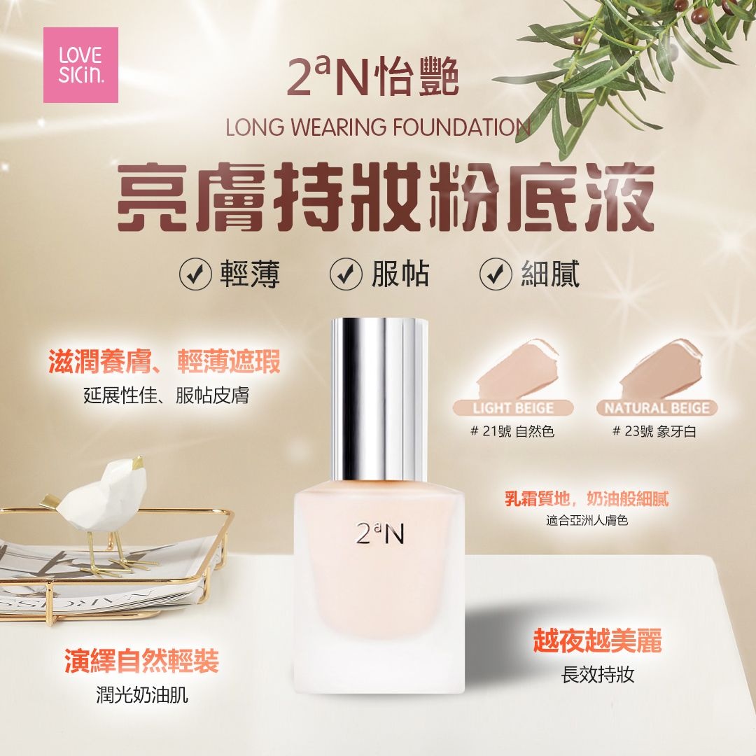 2aN 亮采持妝粉底液 Long Wearing Foundation 30mL #23自然白 Natural Beige