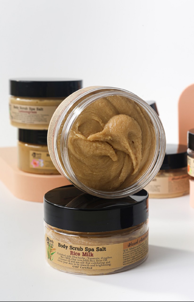 ❣️ 富含泰國草本田中、生薑、蘆薈、羅望子、薑黃、蜂蜜、牛奶、甜杏仁油和溫泉鹽,可幫助您清除體內老化的有害化學物質,讓肌膚潔淨、清新、柔滑,自然提亮膚色,豐富的油脂可洗去乾燥。在「身體磨砂水療鹽」中放鬆自己
