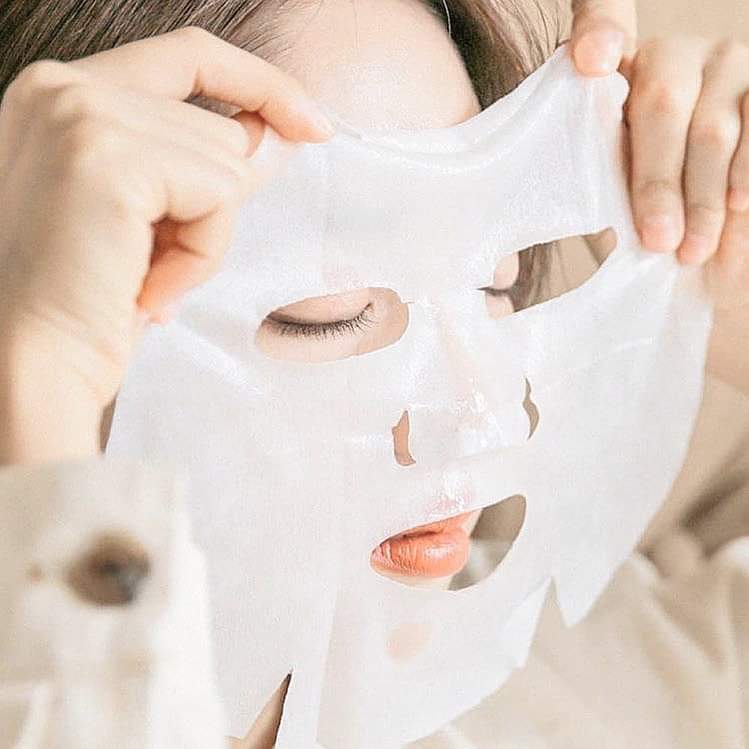 為了全面鎖住精華液不流失,結構分為外(補水防護層)、中(蠶絲面膜)和內(調整面膜層)三層。輕輕撕開珠光膜(外層)和藍色不織布(內層),使用中層輕薄蠶絲面膜敷在臉部30-40分鐘即可。
