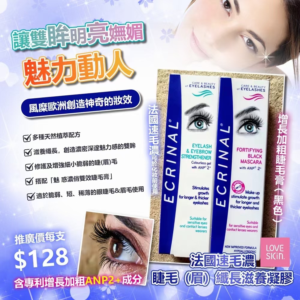 在法國流行各種美睫用品 ECRINAL更是其中一個代表品牌 全球多國銷售 含ANP2+專利加長加粗成分 (包裝天藍字)睫毛及眉毛精華 •人稱‘’速毛濃‘’ 及(包裝粉紅字)睫毛膏 護膚保養美妝年輕化, 市場亦不停轉變以追趕步伐 而當中美髮、指甲及美睫用品款類更是持續攀升 女士們 分享這組明星的大眼小心機 有著一副濃密卷翹的睫毛 會讓眼神傳達更出色!更柔媚! 如何在眾多美睫商品中脫跳而出 女星...