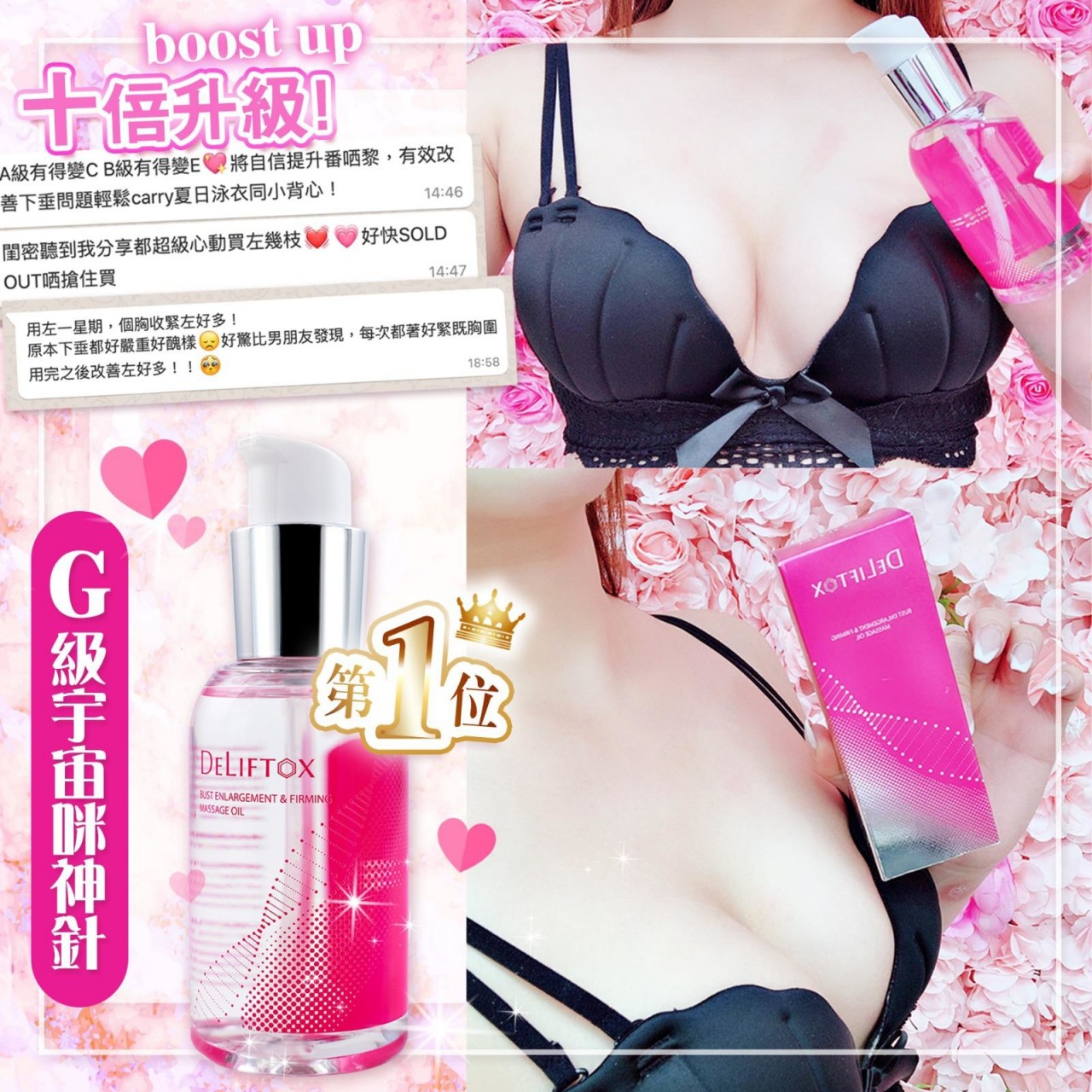 好想試下前面漲卜卜既感覺🌚🌚,用過好多產品都無用🙈咁你一定要試下Deliftox 新品 #E級咪神針❤️❤️❤️ ,即時大一CUP,自身乳房脂肪25倍!男友大叫漲到不行了‼️‼️