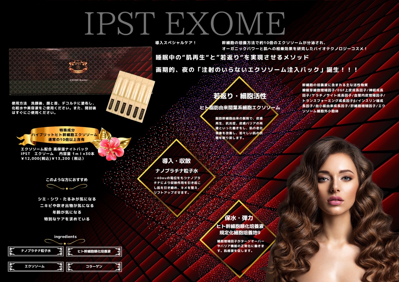 日本品牌「IPST EXOME」護膚品。為想要體驗優質美容的專業人士推出沙龍專屬化妝品。