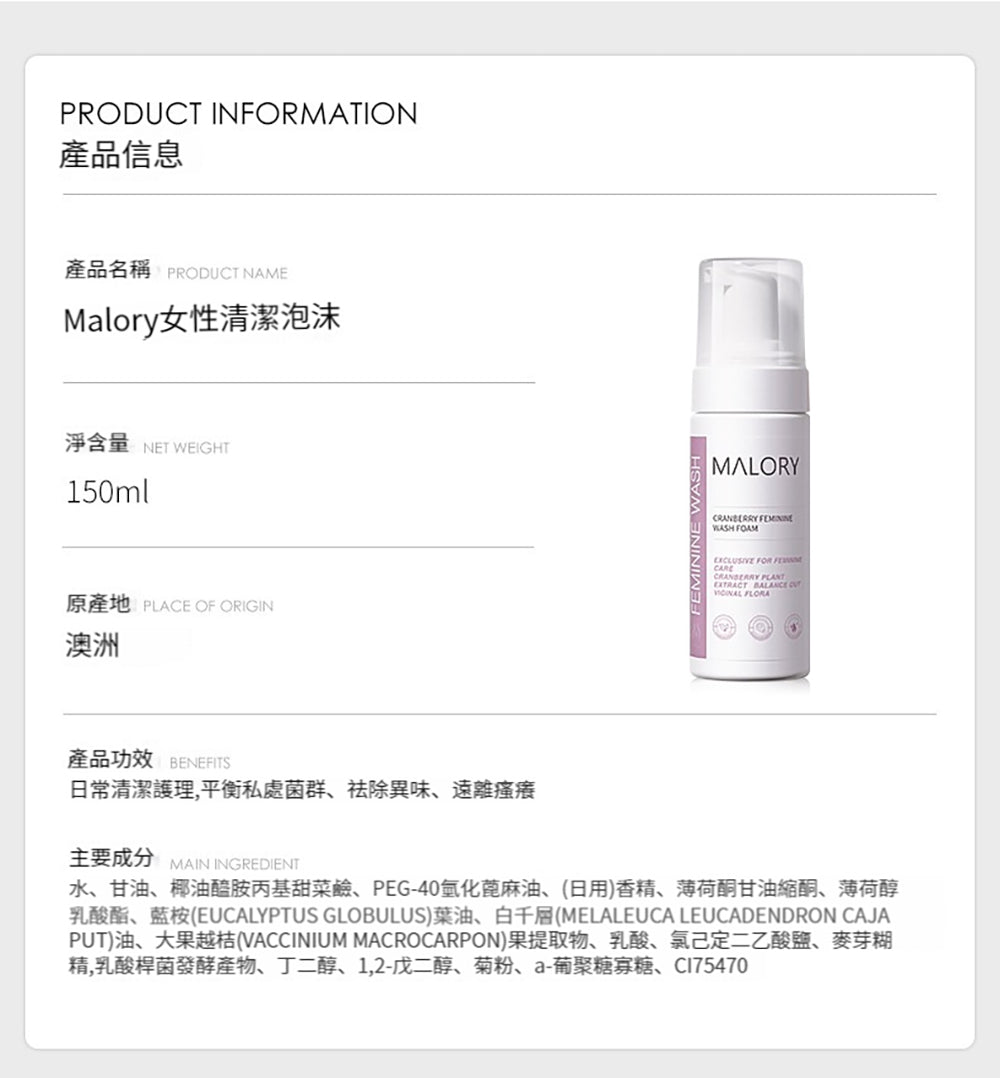 MALORY蔓越莓私處清潔泡沫 孖裝優惠