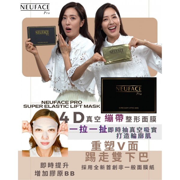 NEUFACE Pro 4D真空繃帶整形面膜 1盒7折 重點賣點: 即時提升 增加膠原蛋白 重塑輪廓 祛除魚尾紋,淡化法令紋 減淡色斑 抗衰老 踢走雙下巴 容量:6 片 x 28ml 產地:韓國製造 主要成份功效: NEUFACE Pro Super Elastic Lifting Mask 匯萃兩種不同類型的活性肽和天然植物提取物提煉而成的高效緊緻面膜,不旦可以改善皮膚的彈性,還可以修復脆...