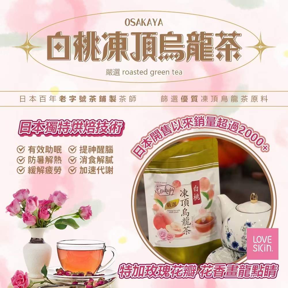 完美的一天、早餐、中午、下午或夜間的任何時間!烏龍茶、白桃和玫瑰花瓣 日本OSAKAYA《白桃凍頂烏龍》沖泡一杯充滿活力的烏龍茶