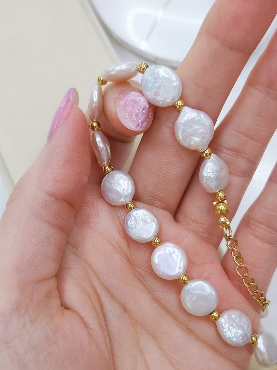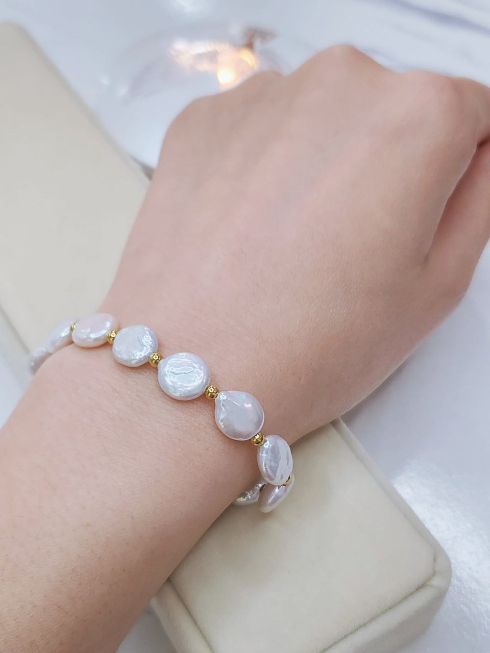 「Full Moon滿月手鍊」由精選的珍珠串成,散發著溫柔的光芒,如同月光輕輕撫過肌膚,帶來寧靜與祥和。佩戴它,彷彿能感受到月神的祝福,讓您在夜晚散發迷人的魅力。
