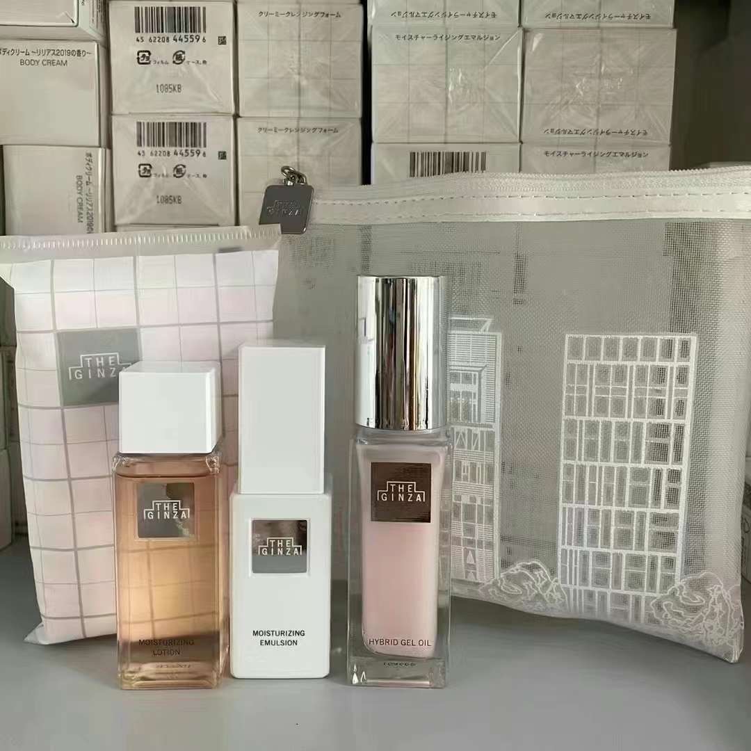日本THE GINZA資生堂御銀座 最新款旅行三件套裝 價值超過$1800元 The Ginza御銀座限定套裝 適合外出旅遊出差和對The Ginza感興趣的用家,第一次接觸的朋友。 套裝內含: ①御銀座柔澈潔面乳30g ②御銀座粉晶煥能水52ml ③御銀座铂晶煥能乳42g ④御銀座水乳專用棉片12片 PS: 按照正裝比例計算,Ginza的防曬隔離貨裝40g價格是33000日圓